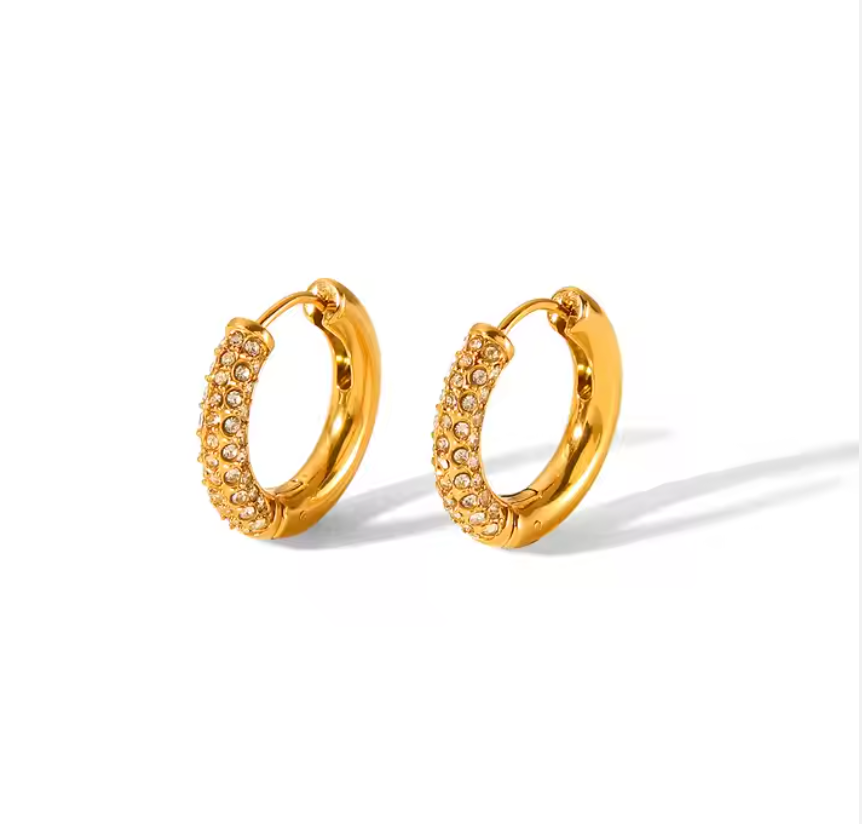 LUMI Pave Hoop Earrings feature a refined partial inlay of rhinestone-paved zircon for an effortless yet eye-catching design